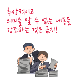 추상적이고 검증할 수 없는 단어 사용은 자제해야 합니다.