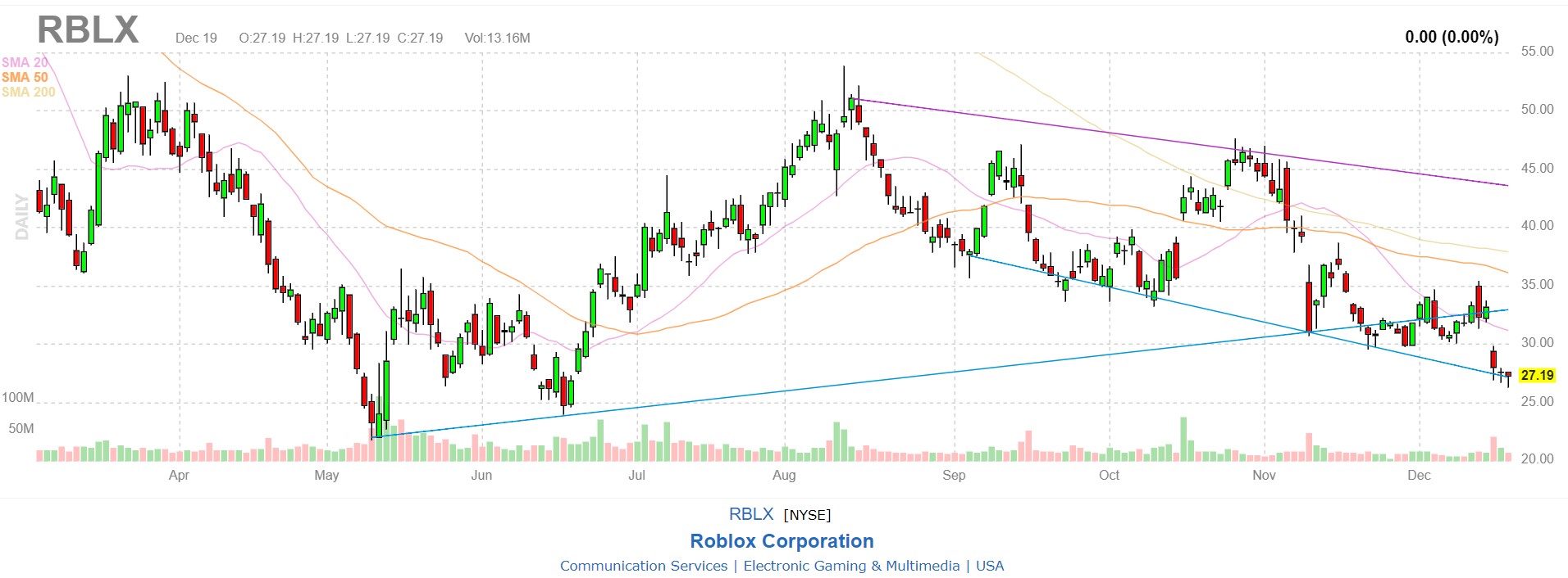 사람들의 폭발적인 관심은 새로운 비지니스 모델을 찾고 있는 기업들을 자극시켰습니다. 그리고 자본시장 또한 미래의 가능성을 보고 메타버스 관련 기업들에게 투자를 하기 시작했습니다. 이때 나타난 기업이 바로 '로블록스(Roblox, RBLX)' 입니다.