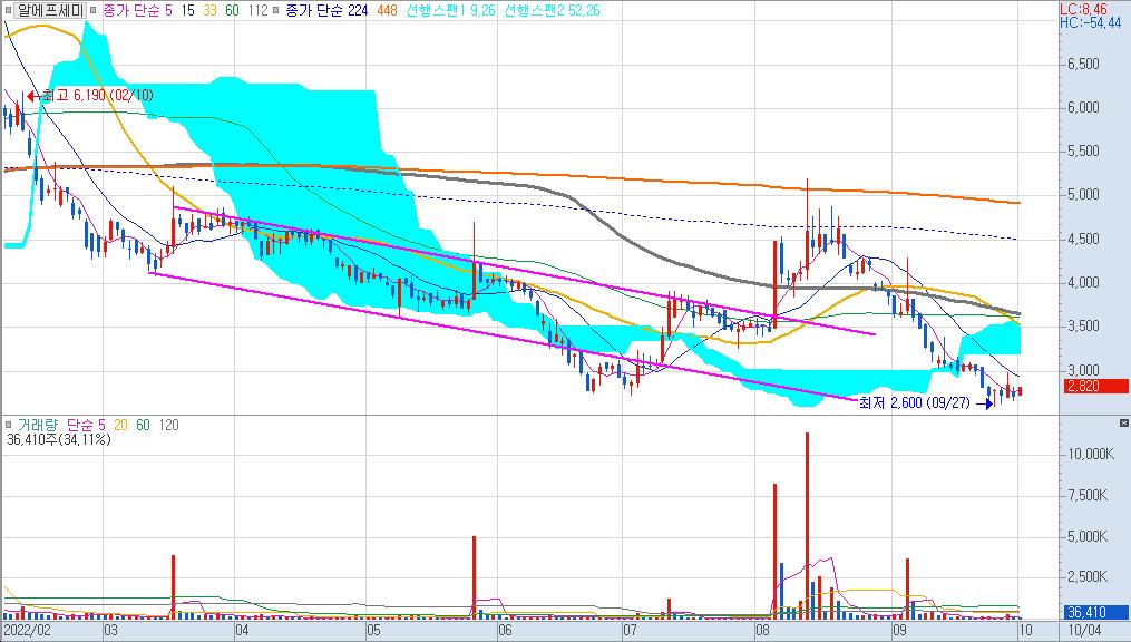 주봉상의 위치로 보게 되면 4,000원 선으로 다시 내려왔다가 10,000원대로 올라가는 모습을 그릴 것 같습니다. 일단 현재 위치에서 하락 추세에서 추세를 바꾸기 위해서는 추세 상단에서 지지받는 모습을 보여야 합니다