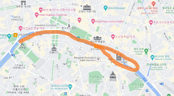 - 콩시에르주리 - 루브르 박물관 - 콩코드 광장 - 그랑팔레 - 에펠탑 선착