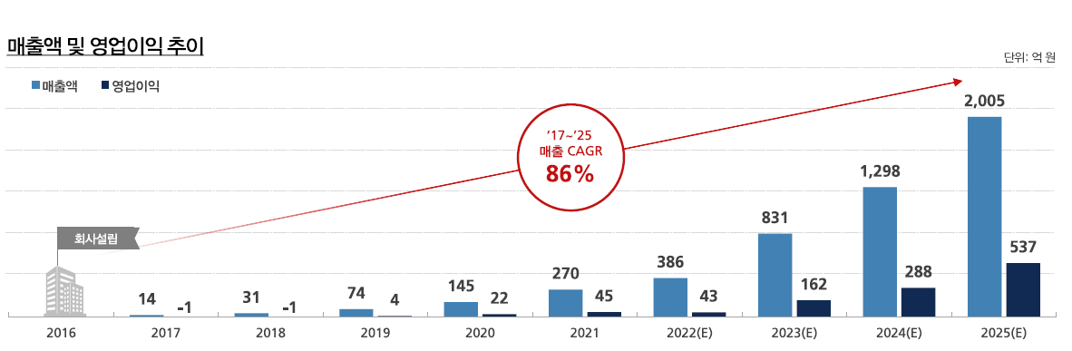 2021년 12월 결산 자료를 통해 보면, 매출액은 270억 원으로 이미 중소기업 수준은 벗어난 기업입니다. 기업 순이익은 45억으로 작은 회사 규모치고는 이익 규모가 꽤 많은 편에 속하기도 합니다. 확실히 기술력을 먼저 확보한 기업답게 다양한 산업군과 고객사로 안정적인 순이익을 확보하고 있는 것처럼 보입니다.