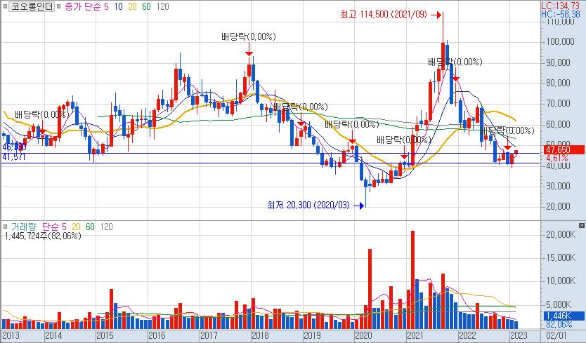 코오롱인더도 역시 하락추세가 이어지고 있습니다. 올라온 폭만큼 가격조정이 이어져야 또 올라갈 수 있겠죠? 그런 면에서 보면 아직까지 시간이 필요해 보입니다.