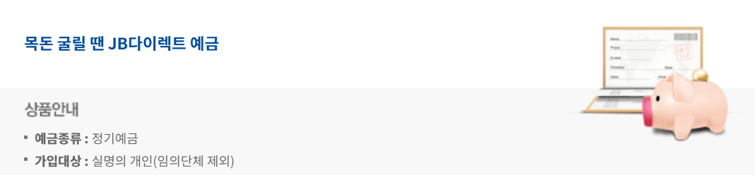 가입하실 때 주의하실 점은 JB다이렉트 자유입출금 통장이라는 유사한 이름의 상품이 있습니다.