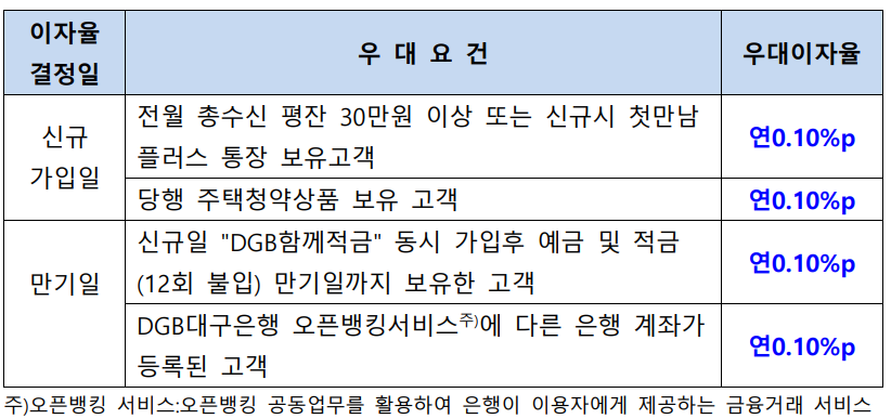 DGB대구은행 상품으로 DGB주거래우대예금입니다.