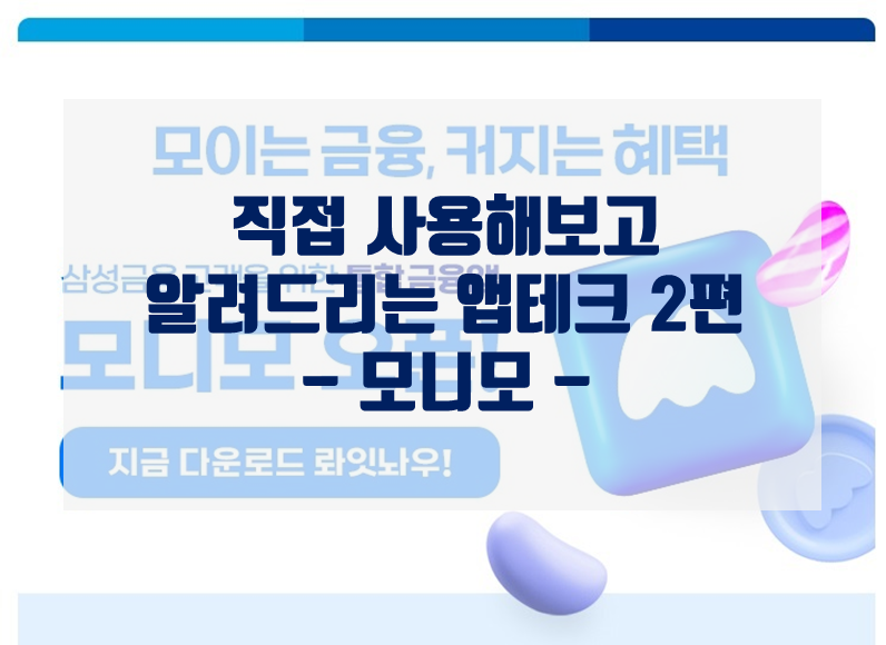 모니모는 삼성생명, 삼성화재, 삼성증권, 삼성카드 등 총 4개의 삼성그룹 금융계열사가 뭉쳐서 만든 애플리케이션입니다.