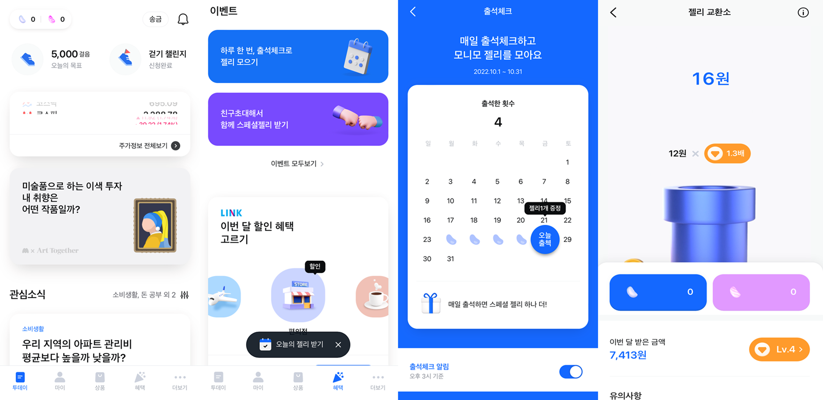 일반 젤리는 걷기챌린지, 이달의 미션에서 주는 미션들을 성공하시면 일반 젤리가 지급이 됩니다.