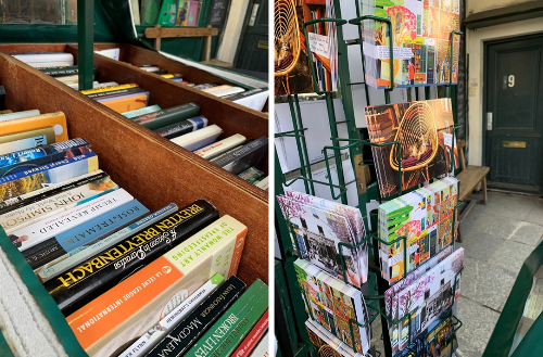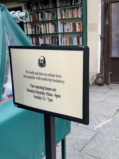 서점 입구 앞에는 여러가지 책들과 셰익스피어 앤 컴퍼니 엽서 및 기념품 등으로 가득합니다. 기념품 조차도 서점과 어울리는 기념품이었습니다. 서점의 분위기를 해치지 않고 셰익스피어 앤 컴퍼니 만의 분위기를 만들어 내고 있었습니다.