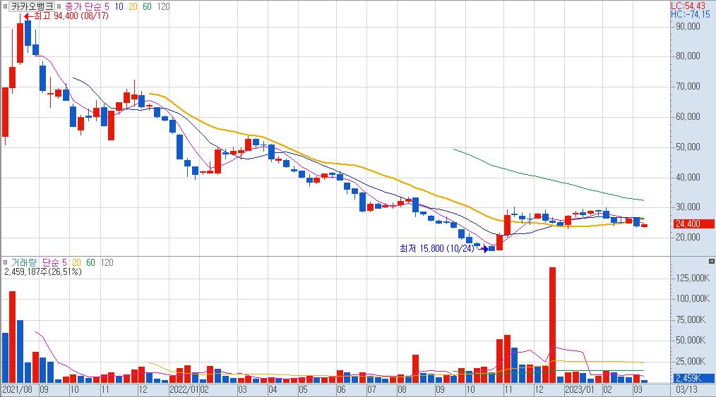한때는 삼성 다음으로 주목받았던, 그리고 국민주가 될 뻔했던 카카오 그룹주 중 이번 포스팅에서는 카카오페이와 카카오뱅크의 주가위치를 다뤄보겠습니다. 카카오페이와 카카오뱅크는 지점하나 없이 인터넷만으로 은행업무를 수행한 우리나라의 대표 핀테크 기업이기도 합니다.