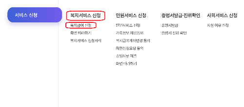>> 복지로 홈페이지에서 로그인 후, 서비스 신청 카테고리를 선택하시면 복지서비스 메뉴가 보입니다. 여기에서 복지급여를 다시 선택해주시면 됩니다.