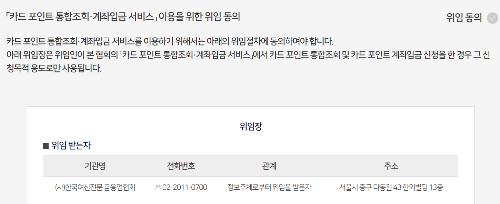 카드사에 흩어져 있는 포인트를 한 곳에서 조회를 하려면 개인정보 수집 및 이용에 대한 동의를 해줘야 한다.