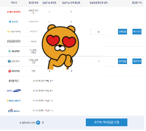카드 포인트 통합조회를 하고 나서 입금 신청을 해도 되지만,