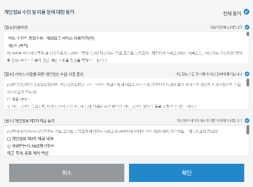 카드사에 흩어져 있는 포인트를 한 곳에서 조회를 하려면 개인정보 수집 및 이용에 대한 동의를 해줘야 한다.