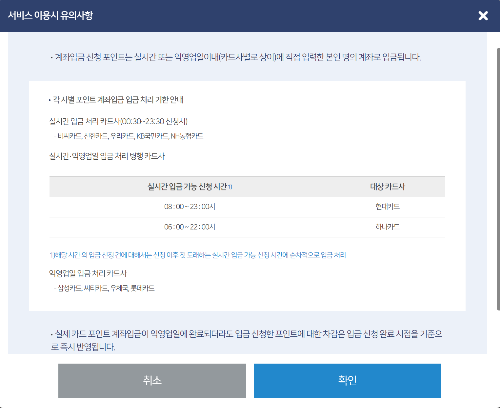 카드 포인트 통합조회를 하고 나서 입금 신청을 해도 되지만,