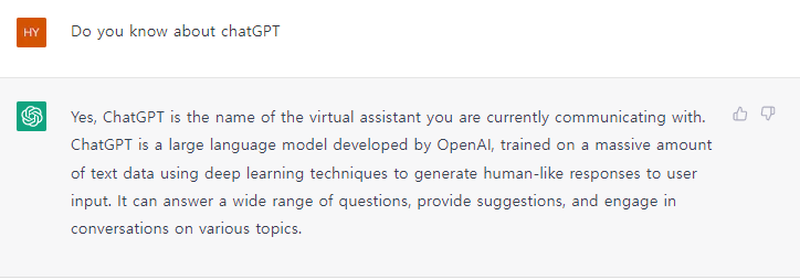 우리가 생각하는 복사해서 붙여 넣는 형태가 아닌 인공지능이 미리 조사되어 있는 텍스트를 기반으로 추론을 통해 답을 생성합니다. 그리고 사람이 쓰는 언어 구조를 그대로 답습해 대답을 하기 때문에 실제로 사람과 대화를 한다는 느낌을 받을 정도입니다.
