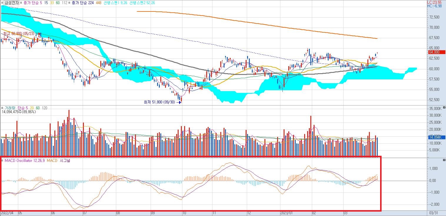 MACD는 하나의 절대적인 기술적 지표가 아니기 때문에 거래량이나 다른 기술적 지표를 같이 활용하시는 것이 좋습니다. 여러분의 성공적인 투자생활을 응원합니다.