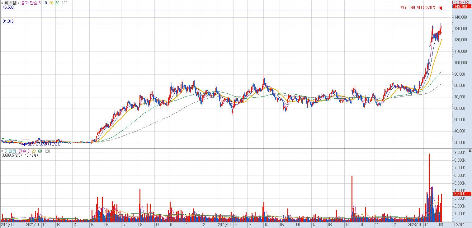 먼저 에스엠은 이슈의 몸통답게 이제까지 가본 적 없는 주가위치에 도달했습니다. 역시 뭘 잡든 대장주를 잡아야 된다는 생각이 듭니다. 엄청난 갭을 띄우면서 갭을 메꾸지도 않고 주가 위치를 유지시켜 줬습니다. 아무래도 15만 원이라는 카카오의 구체적인 매수 단가가 제시됐기 때문일 거라는 생각이 듭니다. 당연히 에스엠은 이제부터 보유자의 영역입니다. 보유하신 분들은 어떻게 매도해야 할지를 고민해야 할 때라는 생각이 듭니다.