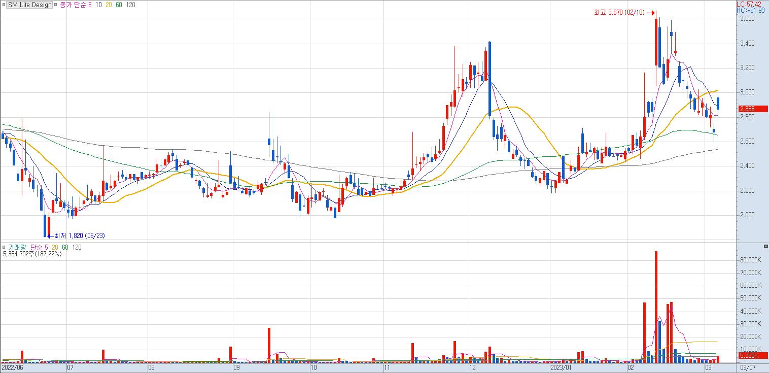 SM Life Design은 당분간 안 보시는 것이 좋겠습니다. 일단 가장 힘이 약한 종목이면서 매수를 잘못해서 계좌에 손실이 있다면 매수 가격대로 복귀하는 것은 오래 기다리셔야 할 수 있는 종목이기도 합니다.